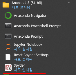 (짜란~ 뭐 한 것도 없는데 Spyder가 깔렸네??)
