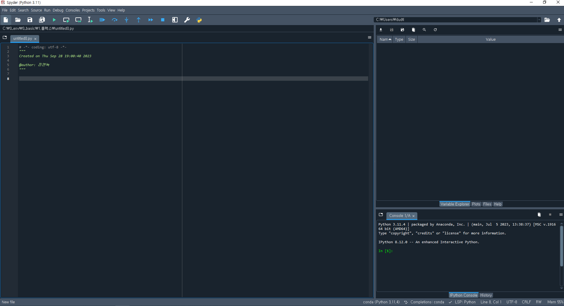 | 파이썬 시작하기2 (Spyder 세팅) (5) | 2023.09.28 |