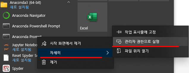 anaconda prompt 창에 아래 코드를 입력하셔서 다시 다운받으세요